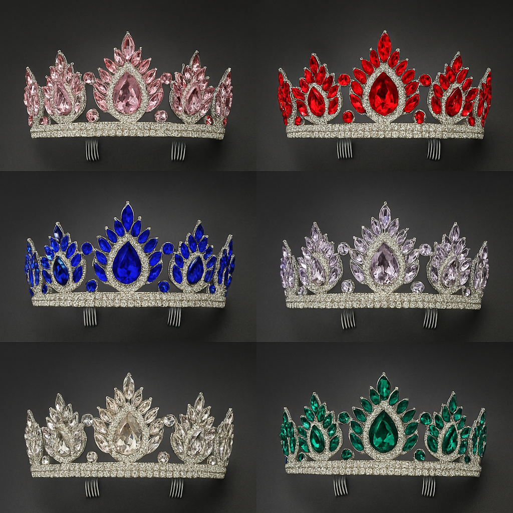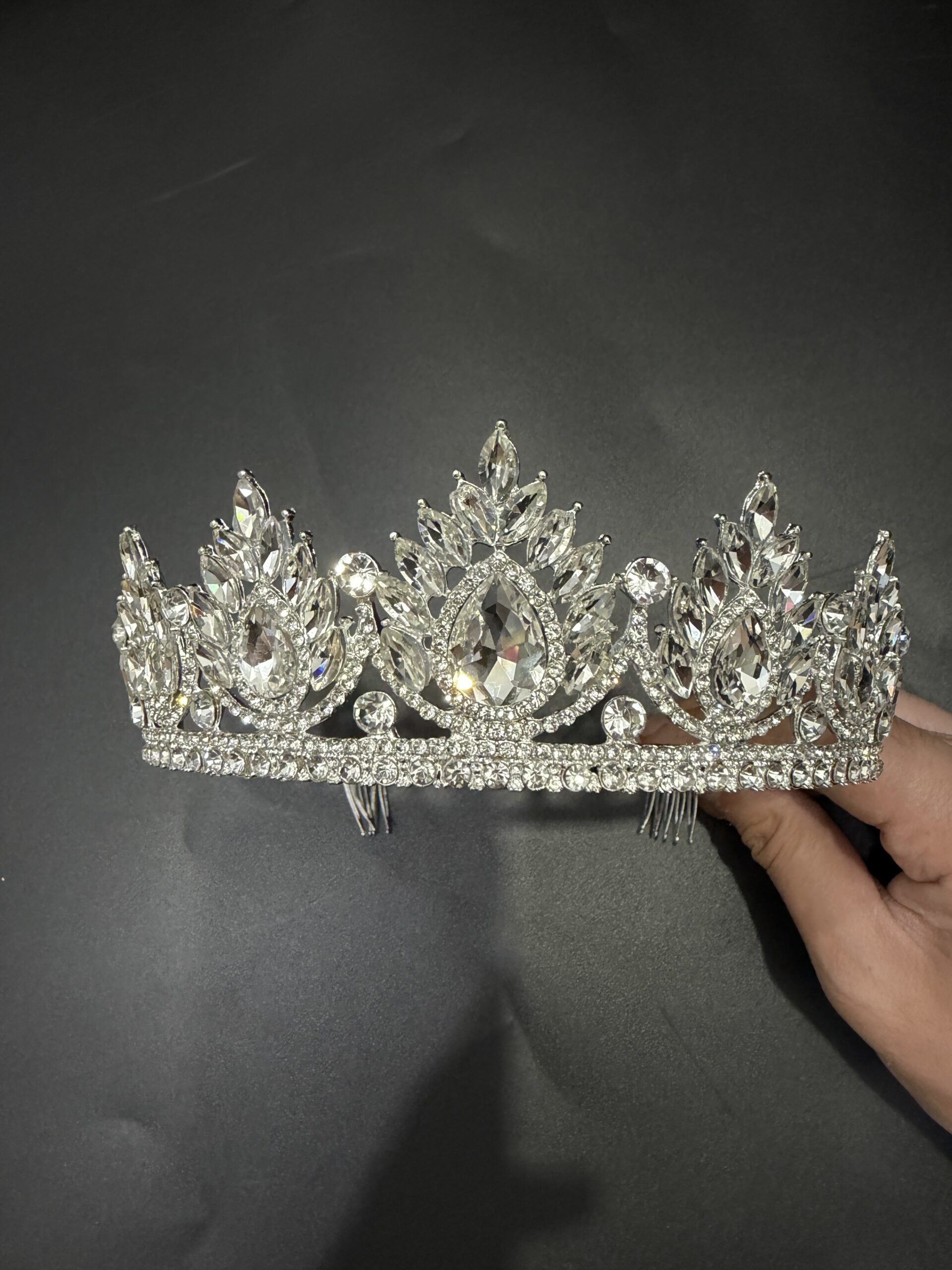 16,5*6,5cm Corona Diadema Tiara De Metal Strass Varios Y Peineta*12U